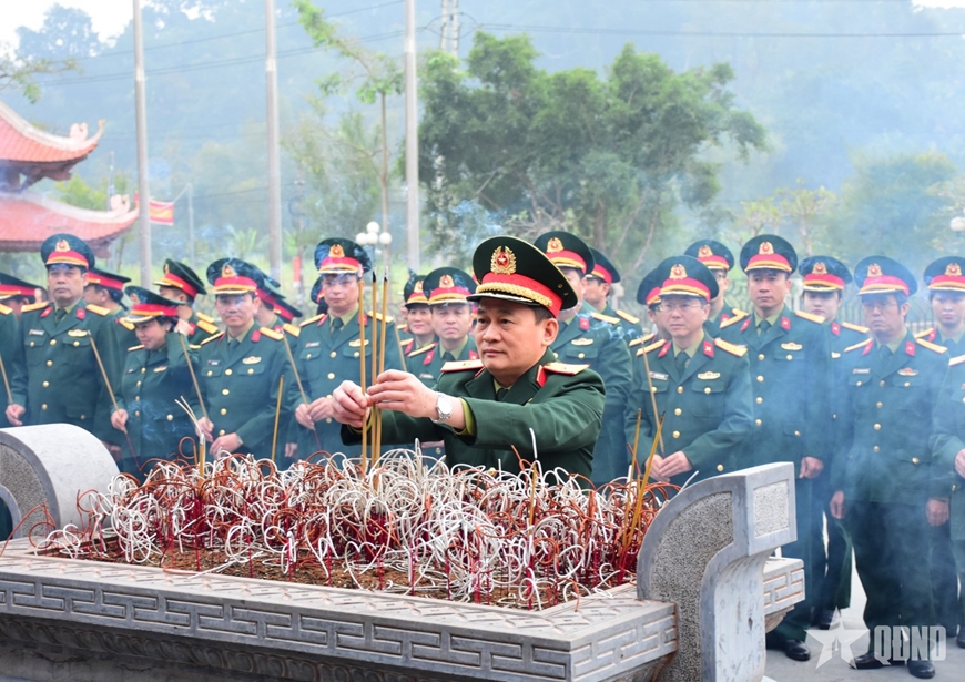 Thiếu tướng Lê Văn Thuận, Phó chánh Văn phòng Quân ủy Trung ương - Văn phòng Bộ Quốc phòng dâng hương tưởng nhớ Chủ tịch Hồ Chí Minh tại Khu di tích lịch sử quốc gia đặc biệt Tân Trào.