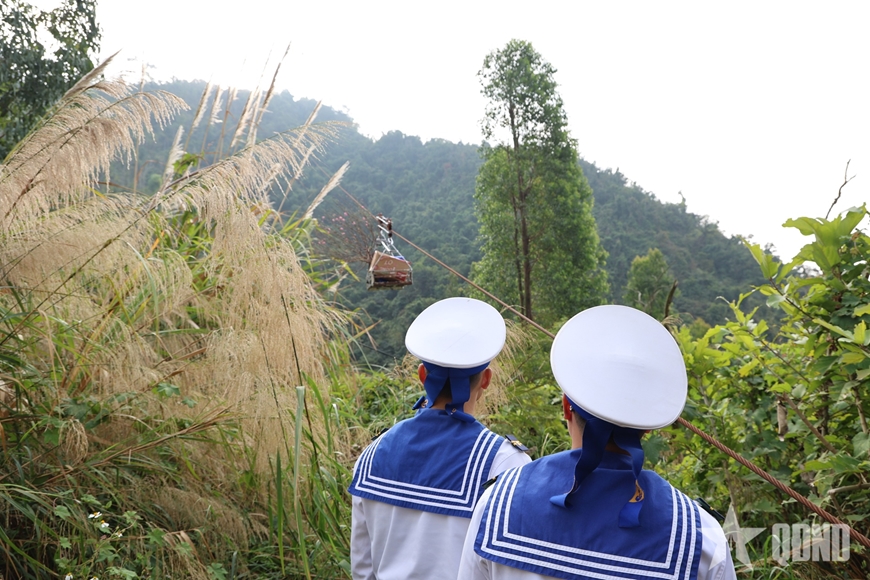 Những món quà Tết được cán bộ, chiến sĩ vận chuyển bằng tời lên điểm cao của Trạm Radar 495.