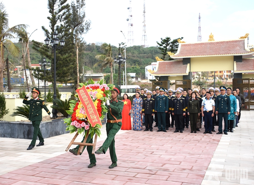 Đoàn công tác dâng hương, dâng hoa tại Đài tưởng niệm liệt sĩ đặc khu Bạch Long Vĩ.