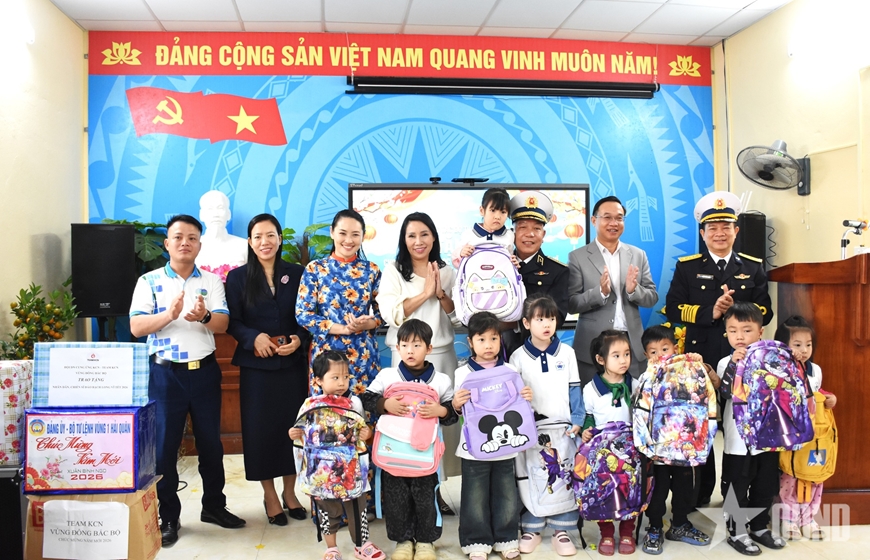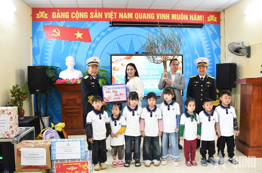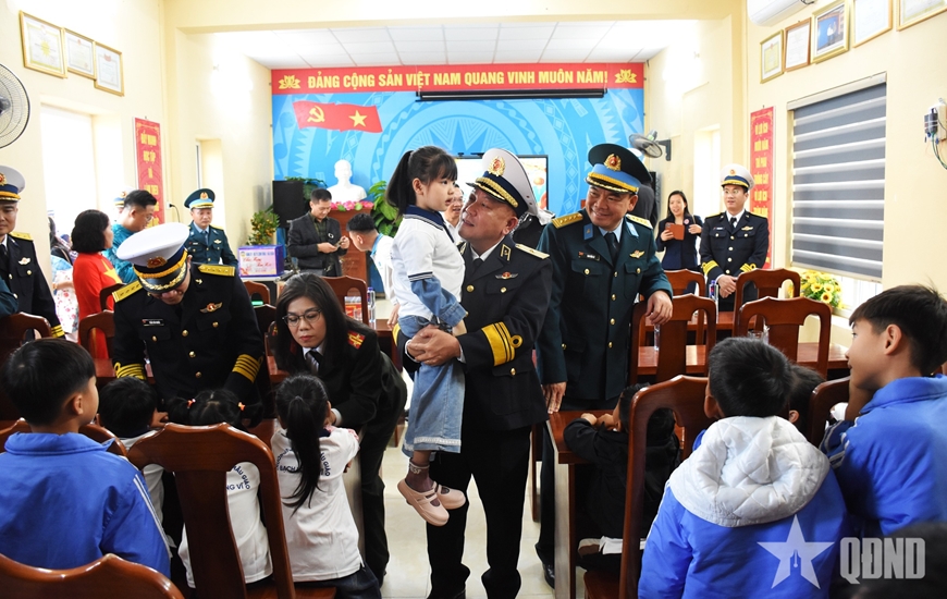 | Đoàn công tác thăm, chúc Tết, tặng quà Trường Tiểu học Bạch Long Vĩ. |