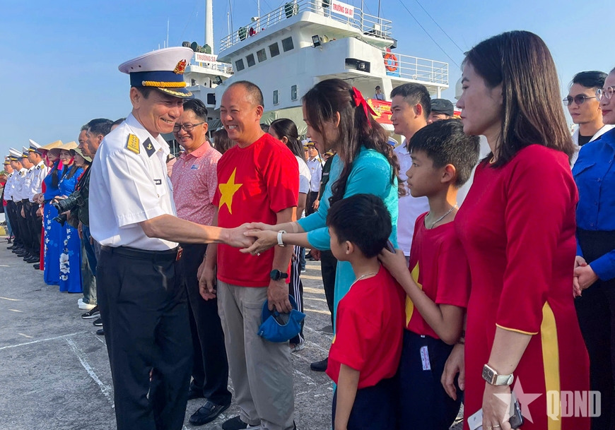 Đại tá Đỗ Hồng Duyên, Phó chính ủy Vùng 2 Hải quân chủ trì giao nhiệm vụ và tiễn đoàn công tác. Tham gia tiễn đoàn có các đồng chí trong Đảng ủy, Bộ tư lệnh Vùng, đông đảo cán bộ, chiến sĩ đơn vị và người thân của cán bộ, chiến sĩ.