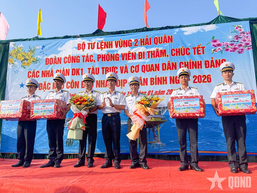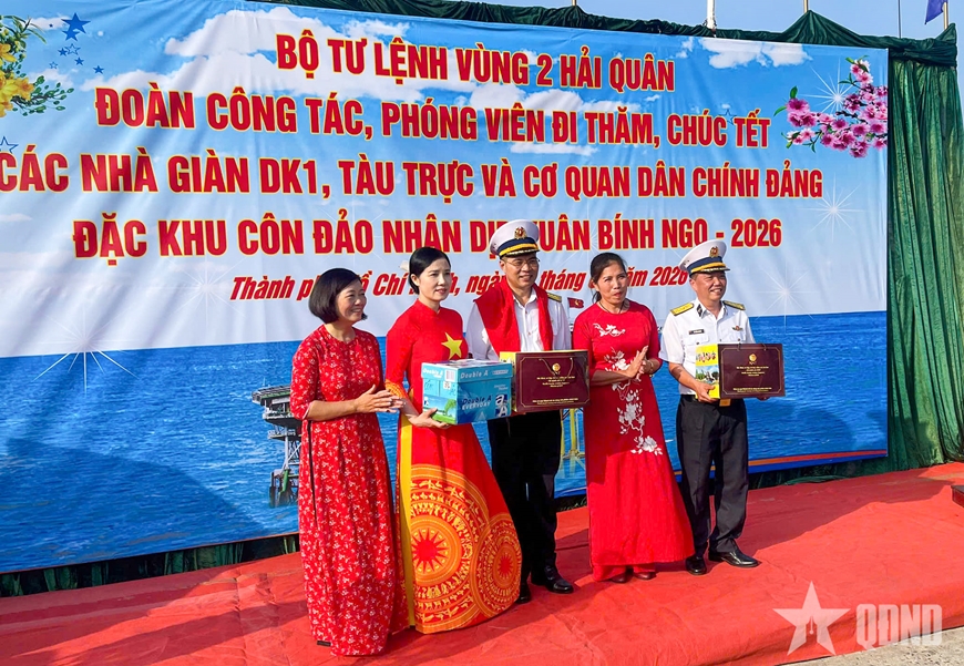 Trên các tàu, hai đoàn công tác mang theo nhiều phần quà Tết của Bộ Quốc phòng, Quân chủng Hải quân, Bộ tư lệnh Vùng 2 Hải quân, các cơ quan dân, chính, đảng, doanh nghiệp và nhân dân các địa phương gửi tặng cán bộ, chiến sĩ đang làm nhiệm vụ trên biển, đảo, thềm lục địa phía Nam dịp Tết Nguyên đán Bính Ngọ 2026.