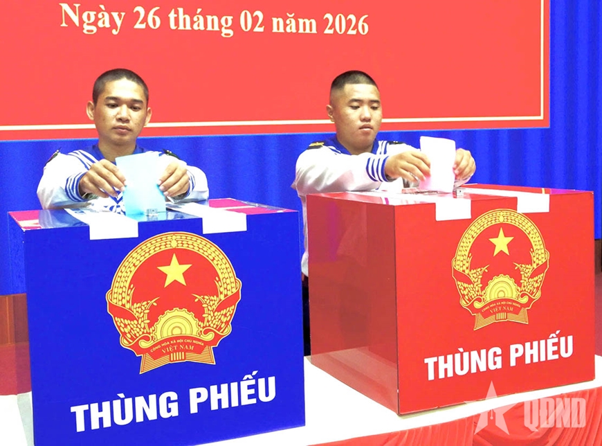 Cán bộ, chiến sĩ Vùng 2 Hải quân phấn khởi thực hiện quyền và nghĩa vụ bầu cử.