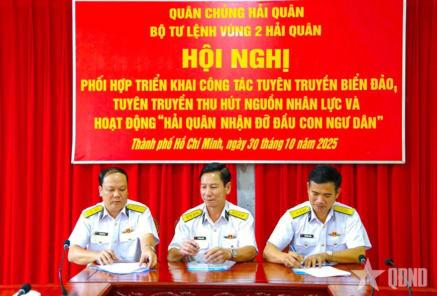 Ngày 30-10, tại xã Long Sơn (TP Hồ Chí Minh), Bộ tư lệnh Vùng 2 Hải quân tổ chức hội nghị phối hợp triển khai công tác tuyên truyền biển, đảo, thu hút nguồn nhân lực; chương trình “Hải quân Việt Nam làm điểm tựa cho ngư dân vươn khơi bám biển” và hoạt động “Hải quân nhận đỡ đầu con ngư dân”.