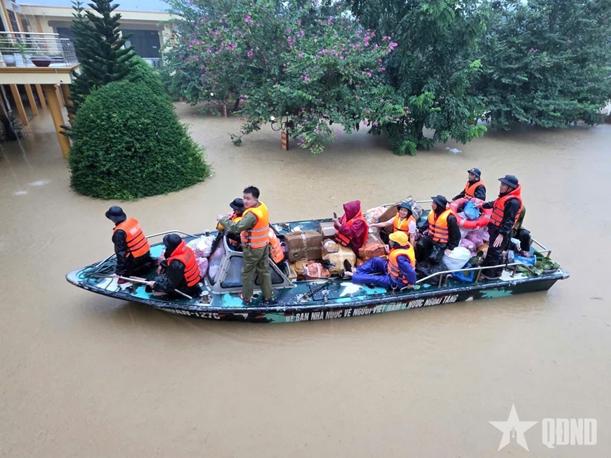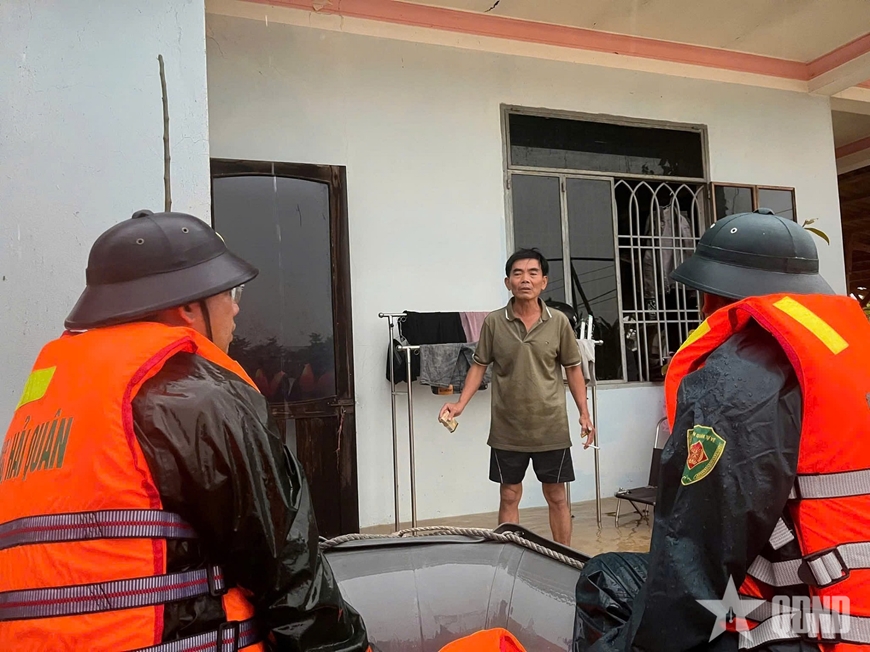 Trong ngày, xuồng cứu hộ cùng xe lội nước đã quần thảo vùng cô lập để đưa các gia đình trong vùng bị ngập đến nơi an toàn. Người dân đã được đơn vị cùng các lực lượng cung cấp thức ăn, nước uống, hỗ trợ chăm sóc sức khỏe.