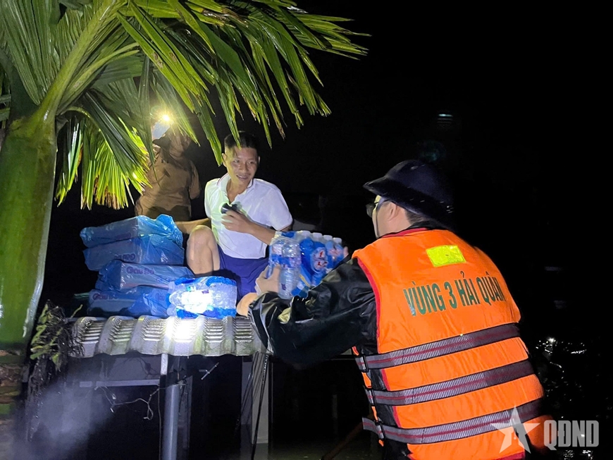 Lực lượng Vùng 3 Hải quân có mặt, hỗ trợ người dân vùng rốn lũ.