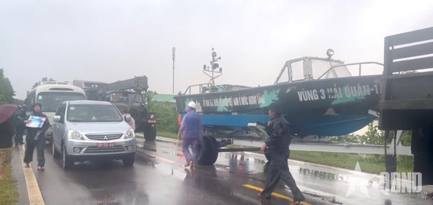 Xuồng chuyên dụng của Lữ đoàn 680 được điều động, hỗ trợ người dân xã Hà Nha.