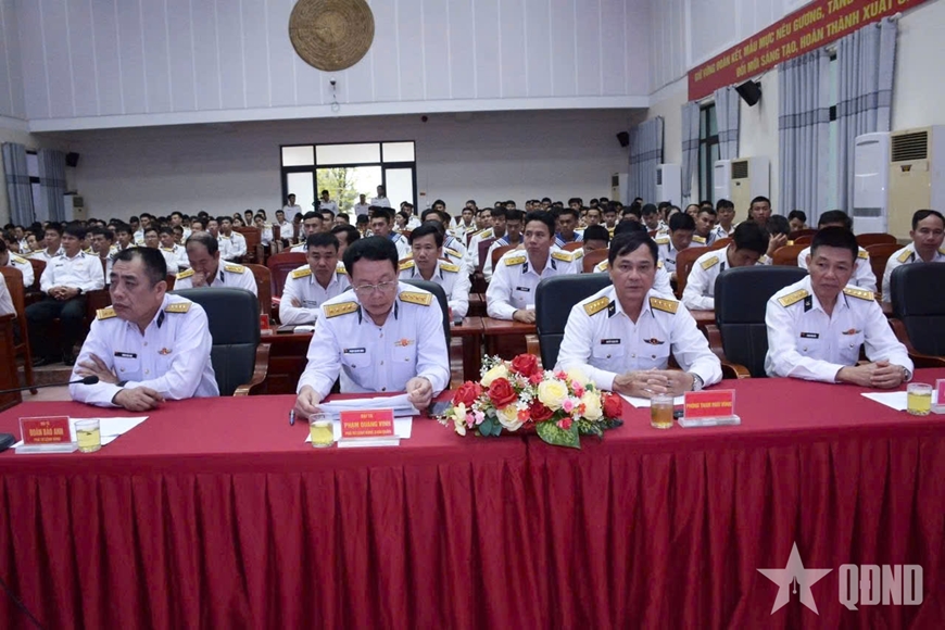 Chuẩn Đô đốc Nguyễn Đăng Tiến, Bí thư Đảng ủy, Chính ủy Vùng 3 Hải quân phát biểu chỉ đạo hội thi.