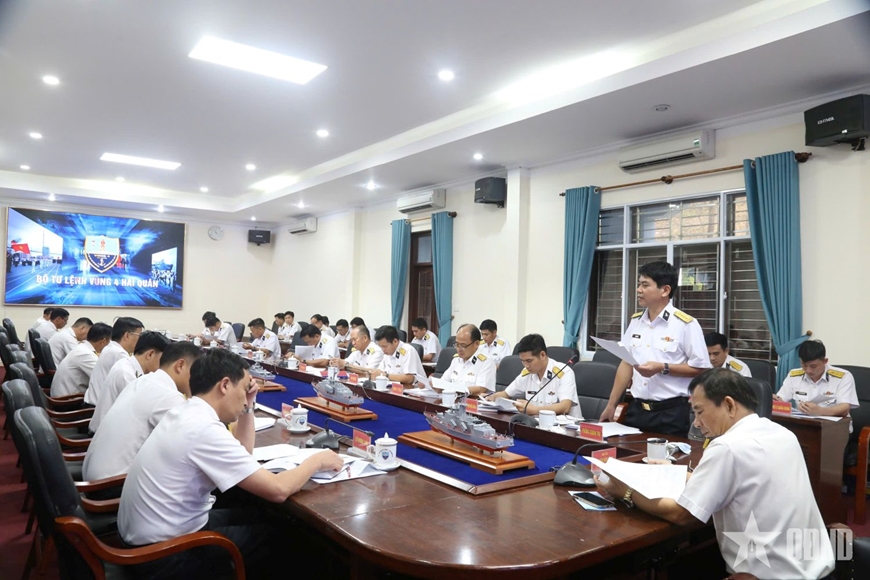 Đại tá Nguyễn Hữu Minh, Phó chính ủy Vùng 4 Hải quân chủ trì hội nghị.