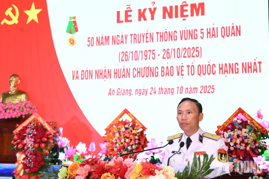 Trong diễn văn, Chuẩn Đô đốc Trịnh Xuân Tùng, Tư lệnh Vùng 5 Hải quân và các đại biểu ôn lại chặng đường 50 năm xây dựng, chiến đấu và trưởng thành của đơn vị. Sau ngày đất nước thống nhất, Vùng 5 (tiền thân là Đoàn Hải quân Phú Quốc) đã cùng các lực lượng tiến công giải phóng đảo Thổ Chu và các đảo Tây Nam, thu hồi toàn bộ vùng biển, đảo thiêng liêng của Tổ quốc.