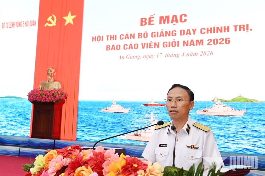 Từ ngày 15 đến 17-4, tại đặc khu Phú Quốc, tỉnh An Giang, Bộ tư lệnh Vùng 5 Hải quân tổ chức Hội thi cán bộ giảng dạy chính trị, báo cáo viên giỏi năm 2026. Chuẩn đô đốc Ngô Văn Thành, Bí thư Đảng ủy, Chính ủy Vùng 5 Hải quân dự và chỉ đạo.