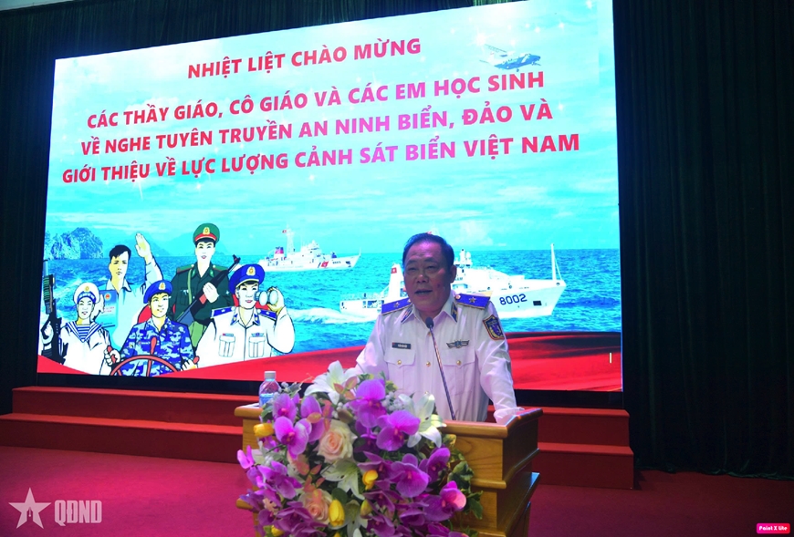 Thiếu tướng Trần Văn Hậu, Chính ủy Vùng Cảnh sát biển 1 trực tiếp tuyên truyền, cập nhật kiến thức về chủ quyền biển, đảo Tổ quốc và nhiệm vụ của lực lượng Cảnh sát biển Việt Nam nói chung cho thầy, trò nhà trường.