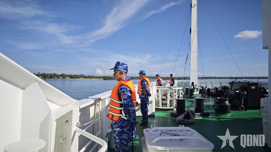 Tàu 390 chuẩn bị tốt các phương án bảo đảm an toàn cho chuyến hành trình trên biển. |