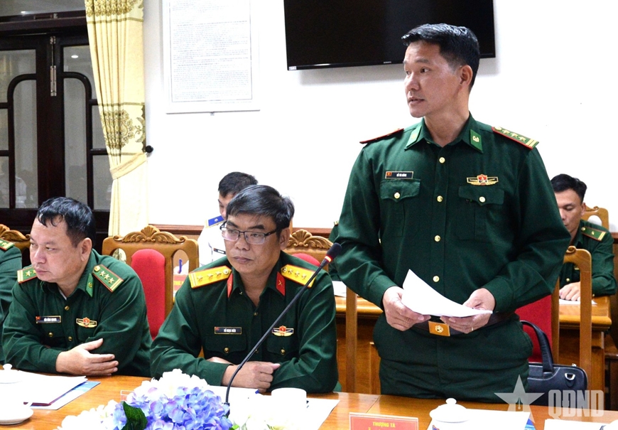 Đại diện Ban chỉ huy Bộ đội Biên phòng tỉnh Quảng Ngãi phát biểu tại hội nghị.