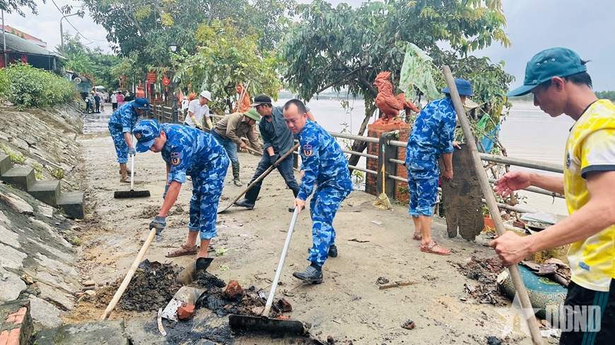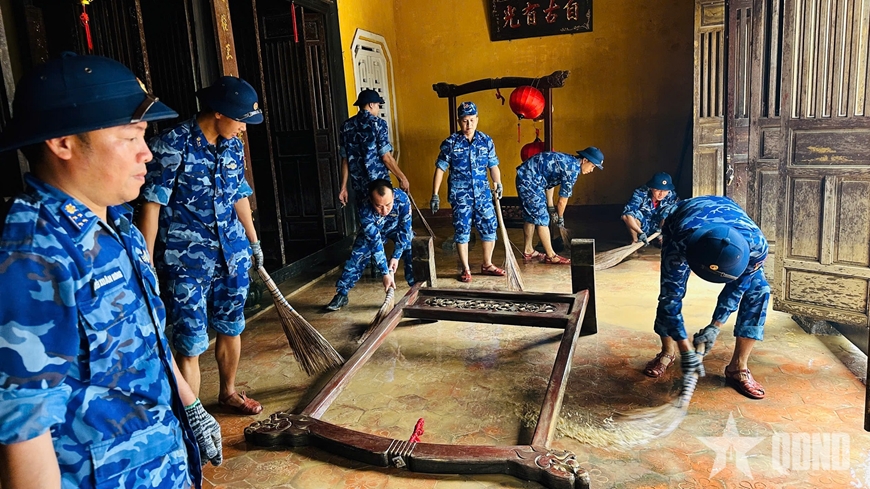 Trong hai ngày 31-10 và 1-11, Bộ tư lệnh Vùng Cảnh sát biển 2 đã điều động 50 lượt cán bộ, chiến sĩ có mặt tại phường Hội An Tây phối hợp với cấp ủy, chính quyền dọn dẹp vệ sinh, giúp các hộ gia đình và khu vực công cộng nạo vét bùn đất, rác thải, lau dọn nhà cửa, trường học, trạm y tế.