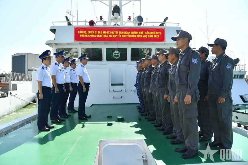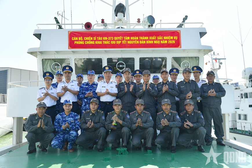 Đại úy Phan Đức Hoàng, Chính trị viên Tàu KN-373 chia sẻ: “Đón Tết xa gia đình, song mỗi cán bộ, chiến sĩ Tàu KN-373 đều xác định rõ niềm vinh dự và trách nhiệm của mình, nhận thức sâu sắc tầm quan trọng của nhiệm vụ được giao và hứa sẽ luôn đoàn kết, đồng lòng, chủ động khắc phục khó khăn, chấp hành nghiêm pháp luật Nhà nước, kỷ luật Quân đội, quyết tâm hoàn thành xuất sắc nhiệm vụ tuần tra, kiểm soát chống khai thác IUU dịp Tết Nguyên đán Bính Ngọ 2026, xứng đáng với sự tin tưởng của Đảng, Nhà nước, nhân dân và thủ trưởng các cấp”.