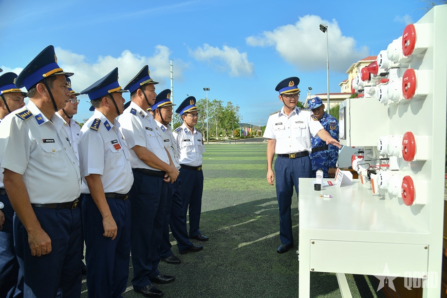 | Thủ trưởng Bộ tư lệnh Vùng Cảnh sát biển 4 tham quan các mô hình huấn luyện. |