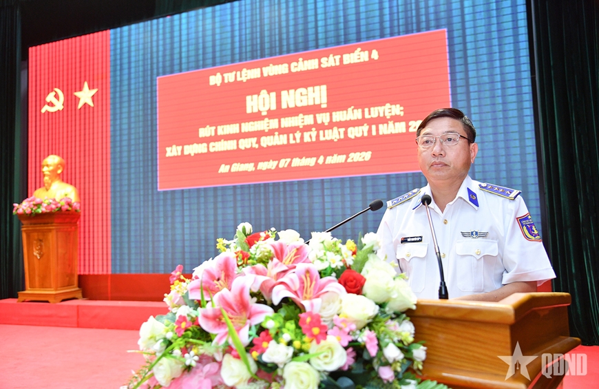 Phát biểu kết luận hội nghị, Đại tá Trần Nguyên Lai, Phó tư lệnh, Tham mưu trưởng Bộ tư lệnh Vùng Cảnh sát biển 4 ghi nhận và biểu dương tinh thần trách nhiệm, sự chủ động của các cơ quan, đơn vị trong tổ chức huấn luyện và duy trì nền nếp chính quy thời gian qua. Đồng chí yêu cầu, thời gian tới các đơn vị tiếp tục quán triệt sâu sắc mệnh lệnh huấn luyện chiến đấu năm 2026; tập trung nâng cao chất lượng huấn luyện đồng bộ, chuyên sâu; tăng cường huấn luyện thực hành, huấn luyện theo tình huống, sát thực tế nhiệm vụ trên biển. Đồng thời, duy trì nghiêm chế độ nền nếp chính quy, tăng cường quản lý kỷ luật, bảo đảm an toàn tuyệt đối trong huấn luyện và khi thực hiện nhiệm vụ.