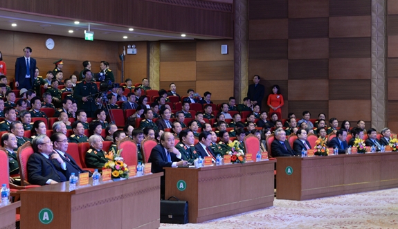 Cùng dự có các đồng chí: Nguyên Tổng Bí thư Nông Đức Mạnh; Trần Quốc Vượng, Ủy viên Bộ Chính trị, Thường trực Ban Bí thư; Đại tướng Ngô Xuân Lịch, Ủy viên Bộ Chính trị, Phó bí thư Quân ủy Trung ương, Bộ trưởng Bộ Quốc phòng; các đồng chí nguyên Bộ trưởng Bộ Quốc phòng: Đại tướng Phạm Văn Trà, Đại tướng Phùng Quang Thanh; Đại tướng Nguyễn Quyết, nguyên Phó chủ tịch Hội đồng Nhà nước, nguyên Chủ nhiệm Tổng cục Chính trị; Thượng tướng Phạm Thanh Ngân, nguyên Chủ nhiệm Tổng cục Chính trị; các đồng chí Bí thư Trung ương Đảng: Phan Đình Trạc, Trưởng ban Nội chính Trung ương; Nguyễn Văn Nên, Chánh văn phòng Trung ương Đảng; Nguyễn Xuân Thắng, Giám đốc Học viện Chính trị Quốc gia Hồ Chí Minh, Chủ tịch Hội đồng Lý luận Trung ương; Nguyễn Hòa Bình, Chánh án Tòa án nhân dân tối cao; Trần Thanh Mẫn, Chủ tịch Ủy ban Trung ương MTTQ Việt Nam. Cùng dự còn có Phó chủ tịch nước Đặng Thị Ngọc Thịnh; đại diện lãnh đạo các ban, bộ, ngành Trung ương và địa phương.