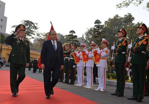 Lãnh đạo Bộ Quốc phòng và Bệnh viện TWQĐ 108 đón Thủ tướng Nguyễn Xuân Phúc. |