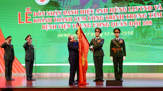 Tại buổi lễ, Thủ tướng Chính phủ Nguyễn Xuân Phúc đã trao danh hiệu Anh hùng LLVT nhân dân thời kỳ chống Pháp tặng Bệnh viện TWQĐ 108.