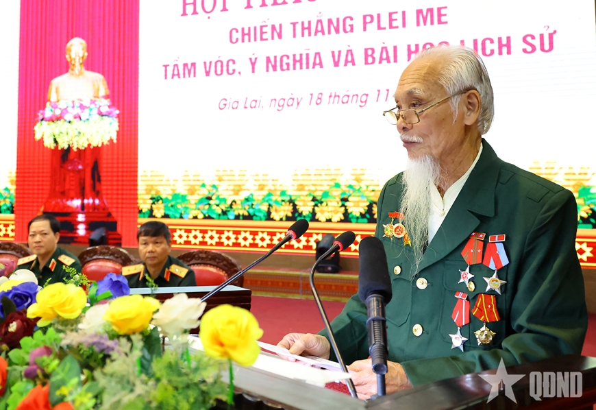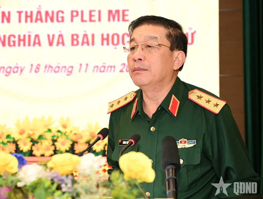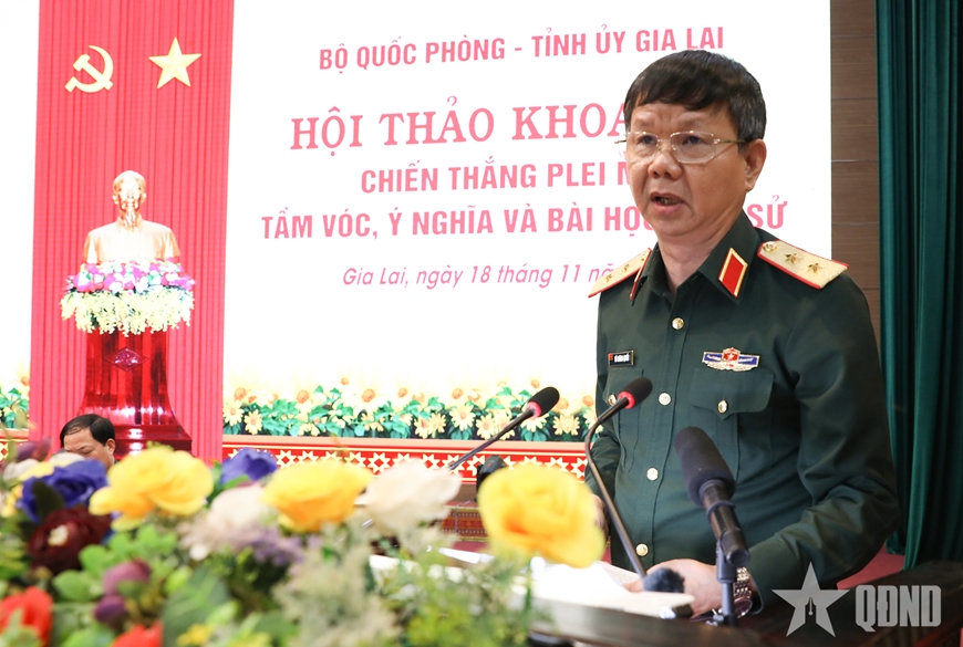 Đồng chí Thứ trưởng Bộ Quốc phòng nhấn mạnh: Hội thảo hôm nay là một trong những hoạt động có ý nghĩa thiết thực kỷ niệm 60 năm Chiến thắng Plei Me; là dịp để toàn Đảng, toàn dân và toàn quân ta ôn lại truyền thống đấu tranh anh dũng của các thế hệ cha anh, tưởng nhớ đồng bào, đồng chí đã chiến đấu, hy sinh cho thắng lợi của sự nghiệp đấu tranh giải phóng dân tộc, thống nhất đất nước.