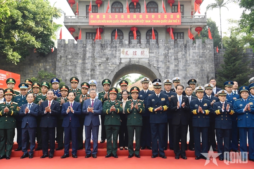 | Đại tướng Phan Văn Giang, Ủy viên Bộ Chính trị, Phó bí thư Quân ủy Trung ương, Bộ trưởng Bộ Quốc phòng cùng Thượng tướng Đổng Quân, Ủy viên Trung ương Đảng Cộng sản Trung Quốc, Bộ trưởng Bộ Quốc phòng Trung Quốc và đoàn đại biểu hai nước tham dự Giao lưu hữu nghị quốc phòng biên giới Việt Nam-Trung Quốc lần thứ 9. |