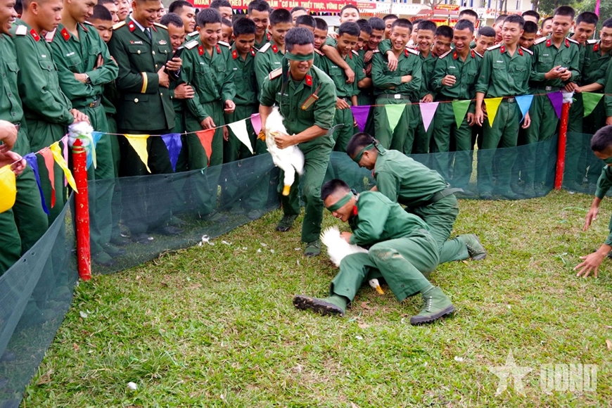 Không chỉ chăm lo đời sống vật chất, tinh thần, đơn vị còn tổ chức nhiều hoạt động vui chơi giải trí sôi nổi, mang đậm sắc xuân và bản sắc văn hóa dân gian như bịt mắt bắt vịt, kéo co, nhảy bao bố… Tiếng cười giòn giã, những tràng pháo tay cổ vũ rộn ràng làm bừng sáng sân doanh trại, xua tan nỗi nhớ nhà của những người lính trẻ lần đầu đón Tết xa quê.