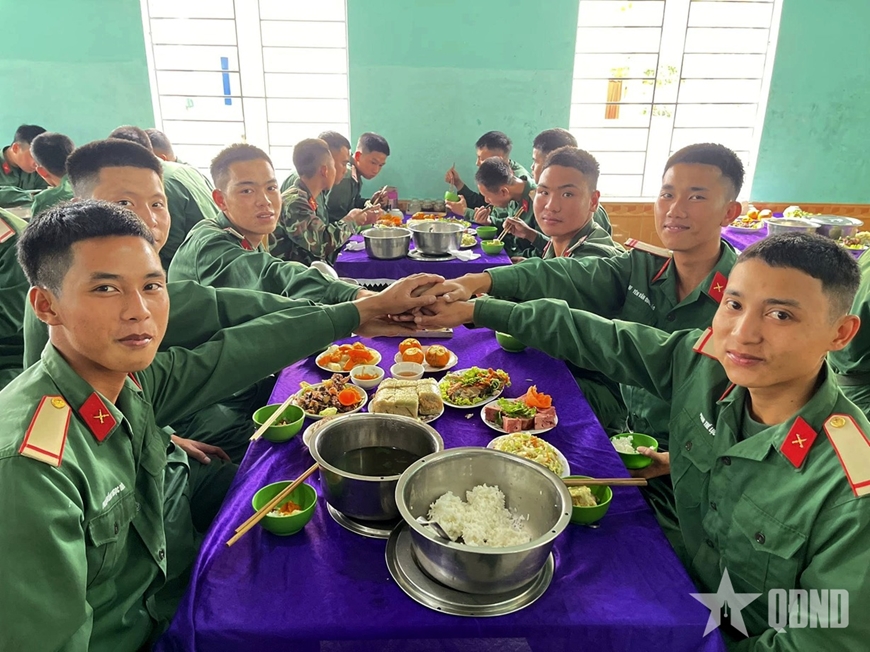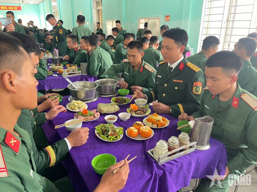 | Ấm áp bữa cơm chiến sĩ ngày xuân. |