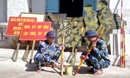 Huấn luyện và SSCĐ là nhiệm vụ chính trị quan trọng nhất của cán bộ, chiến sĩ trên các đảo, điểm đảo ở quần đảo Trường Sa. Chỉ có huấn luyện sát thực tế, đạt chất lượng tốt thì mới đủ khả năng hoàn thành nhiệm vụ bảo vệ vững chắc chủ quyền biển, đảo. Thế nhưng, nhiệm vụ huấn luyện có rất nhiều việc kéo theo. Đơn cử như việc bảo đảm mô hình, đồ dùng huấn luyện cũng là công việc rất khó đối với cán bộ, chiến sĩ nơi biển nước mênh mông này.