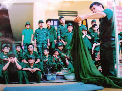 Hướng dẫn gấp chăn màn cho học sinh lớp "Học kỳ trong Quân đội" năm 2015 tại Bộ CHQS tỉnh Phú Thọ.