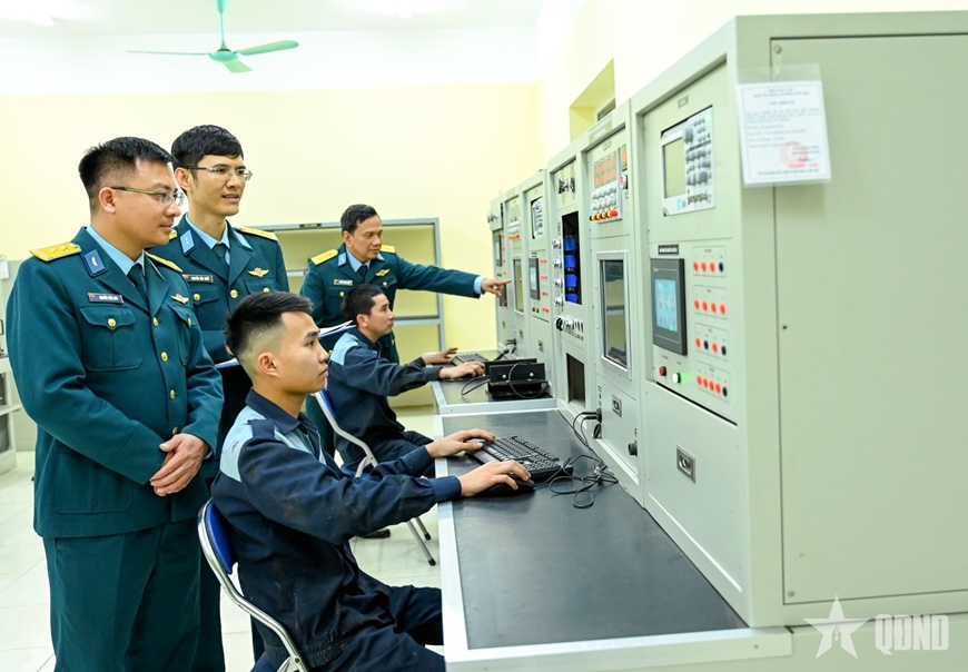| Cán bộ, nhân viên Nhà máy A34 vận hành hệ thống kiểm tra, hiệu chỉnh chi tiết khí tài. |