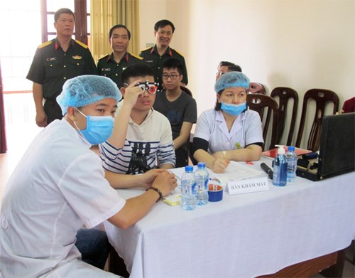 Ban TSQS quận Đống Đa (Hà Nội) khám sức khỏe cho thí sinh đăng ký xét tuyển vào các trường quân đội, tháng 4-2017.