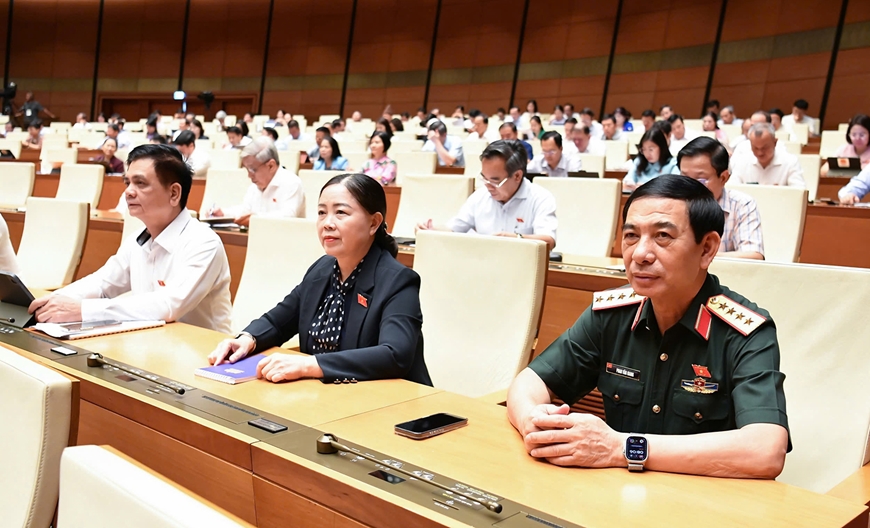Đại biểu Quốc hội nghe Báo cáo tóm tắt giải trình, tiếp thu, chỉnh lý dự thảo Luật Bảo vệ dữ liệu cá nhân, tháng 6-2025. Ảnh: VŨ HIẾU