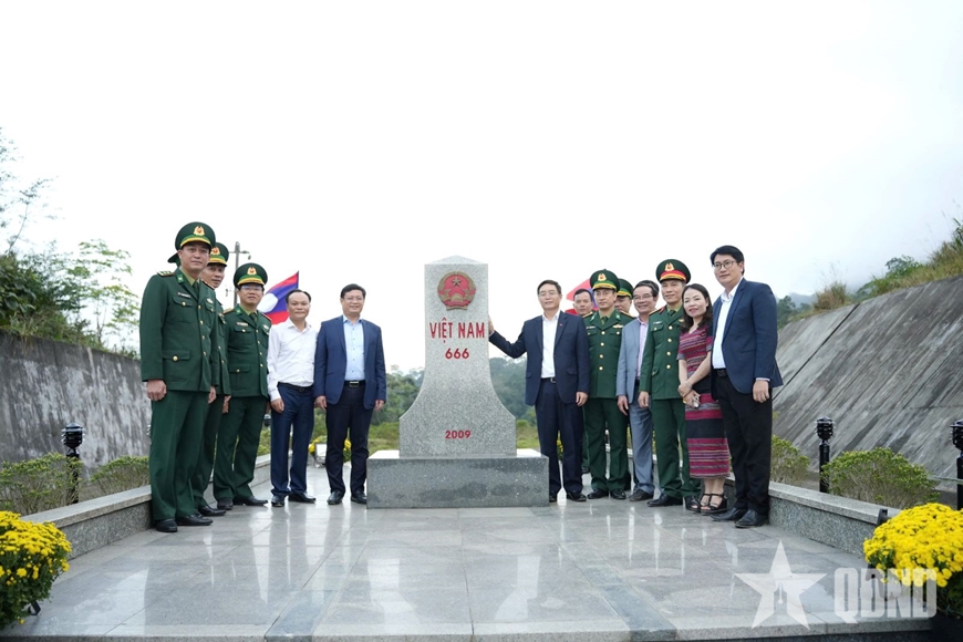 Đồng chí Nguyễn Đình Trung, Ủy viên Trung ương Đảng, Bí thư Thành ủy Huế và các đồng chí lãnh đạo TP Huế, lãnh đạo Ban chỉ huy Bộ đội Biên phòng TP Huế kiểm tra hoạt động công tác biên phòng tại cột mốc giới 666, Đồn Biên phòng cửa khẩu A Đớt (Ban chỉ huy BĐBP TP Huế).