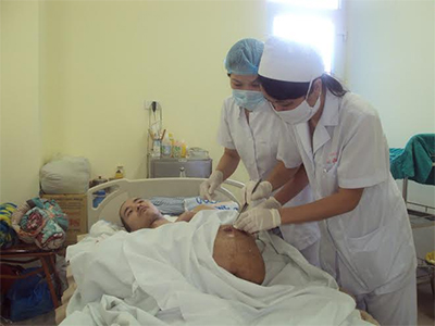Điều dưỡng viên chăm sóc bệnh nhân tại Viện Bỏng quốc gia (Học viện Quân y)
