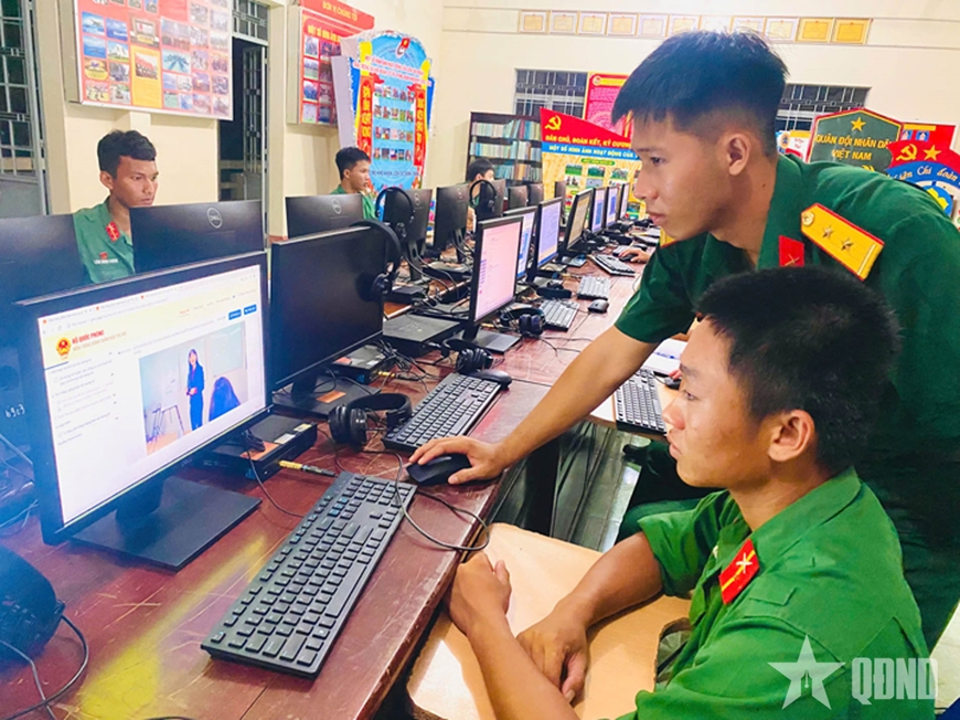 Ngày nghỉ cuối tuần, phòng giao ban Đại đội 2 (Tiểu đoàn 4, Trung đoàn 5, Sư đoàn 5, Quân khu 7) rộn ràng không khí lớp học “Bình dân học vụ số”. Những cú click chuột, thao tác gõ phím tuy còn chậm, nhưng từng bước khẳng định quyết tâm làm chủ công nghệ của người chiến sĩ trong thời đại số.