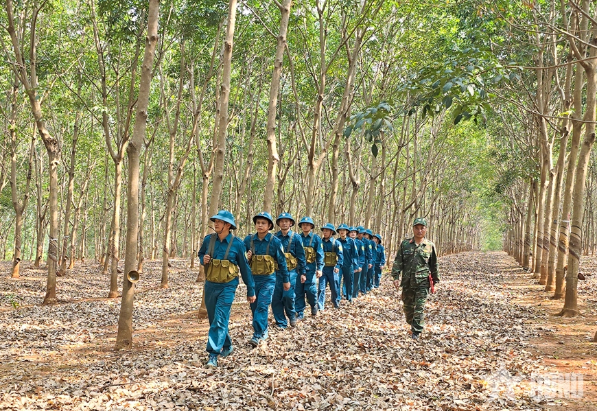 | Lực lượng tự vệ Binh đoàn 15 đi tuần tra. |