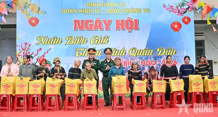 Để chăm lo Tết Nguyên đán Bính Ngọ 2026 cho người lao động và đồng bào các dân tộc, Binh đoàn đã tổ chức chương trình “Xuân biên giới thắm tình quân dân” ở tất cả các đội sản xuất và 271 thôn, làng kết nghĩa trên địa bàn đứng chân. Qua đó, trao gần 70.000 suất quà Tết với tổng kinh phí hơn 100 tỷ đồng; trao quà của Thủ trưởng Bộ Quốc phòng gồm 10 tấn gạo, 1.000 thùng mì ăn liền tặng người lao động và nhân dân.