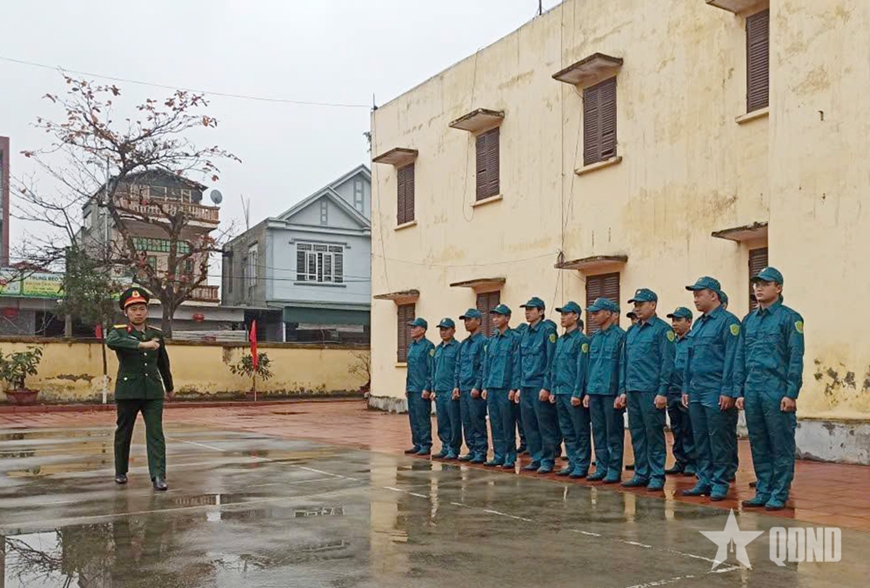| Cán bộ, chiến sĩ Ban CHQS phường Việt Hòa, thành phố Hải Phòng luyện tập điều lệnh đội ngũ chuẩn bị cho lễ ra quân huấn luyện năm 2026. |