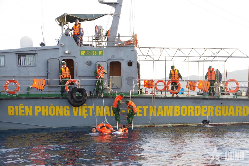 | Cán bộ, chiến sĩ Bộ đội Biên phòng tỉnh Khánh Hòa kịp thời cứu hộ, cứu nạn ngư dân trên biển. |