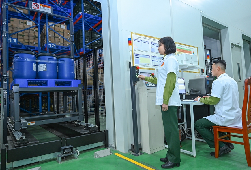 Tìm hiểu, chúng tôi được biết, trước đây, việc quản lý vật tư bằng tem, nhãn và hệ thống sổ kho không chỉ mất nhiều thời gian mà còn gây khó khăn khi tìm kiếm, truy xuất vật tư. Từ khi nhà kho thông minh đi vào hoạt động, công tác tiếp nhận và cấp phát vật tư được tự động hóa tới 3/4 khối lượng công việc. Hệ thống lưu trữ, truy hồi tự động giúp tăng độ chính xác và tốc độ xử lý, đồng thời phần mềm quản lý cho phép kiểm soát chặt chẽ đến từng cơ số, danh mục và hạn sử dụng của vật tư. Ngoài ra, hệ thống còn tích hợp thiết bị giám sát nhiệt độ, độ ẩm cùng hệ thống phòng cháy, chữa cháy. Toàn bộ dữ liệu của nhà kho thông minh được kết nối thông suốt trên mạng truyền số liệu quân sự, tạo thuận lợi cho công tác quản lý, chỉ huy và điều hành của cấp trên.