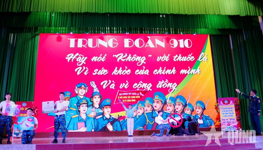 Ở phần thi tiểu phẩm, đội tuyên truyền của Trung đoàn 910 gây ấn tượng mạnh với hình ảnh một người dân hút thuốc lào được khắc họa chân thực, qua đợt thực hiện công tác dân vận của đơn vị. Khi bác sĩ quân y tư vấn, người này bất ngờ khi biết rằng tác hại của thuốc lá không chỉ ảnh hưởng đến bản thân. Bác sĩ quân y giải thích: “Không chỉ bác hút, bác phải chịu tác hại của thuốc lá đâu, mà đặc biệt là những người xung quanh mà mình hay nói là hút thuốc lá thụ động cũng vô tình bị thuốc lá gây hại không kém gì người trực tiếp hút. Nhất là với trẻ em khi hệ miễn dịch còn chưa phát triển hoàn thiện, với phụ nữ và người trưởng thành, ngoài những nguy cơ gây ung thư thì thuốc lá còn dễ gây vô sinh, suy giảm trí nhớ và nhiều chứng bệnh khác, bác ạ”. Tiểu phẩm như một lời cảnh tỉnh, lay động mạnh mẽ nhận thức của người xem. Với lối diễn xuất tự nhiên, thông điệp truyền tải rõ ràng, Trung đoàn 910 đoạt giải xuất sắc nhất ở phần thi tiểu phẩm.