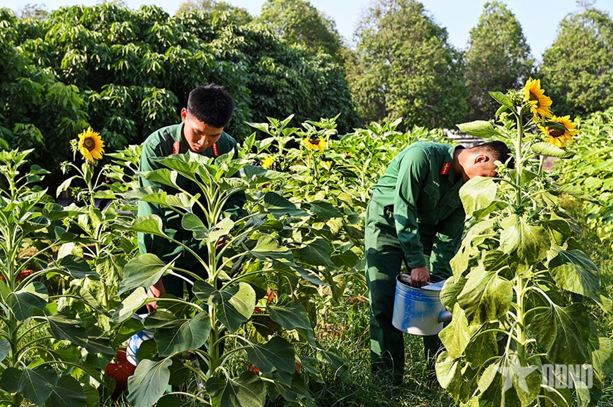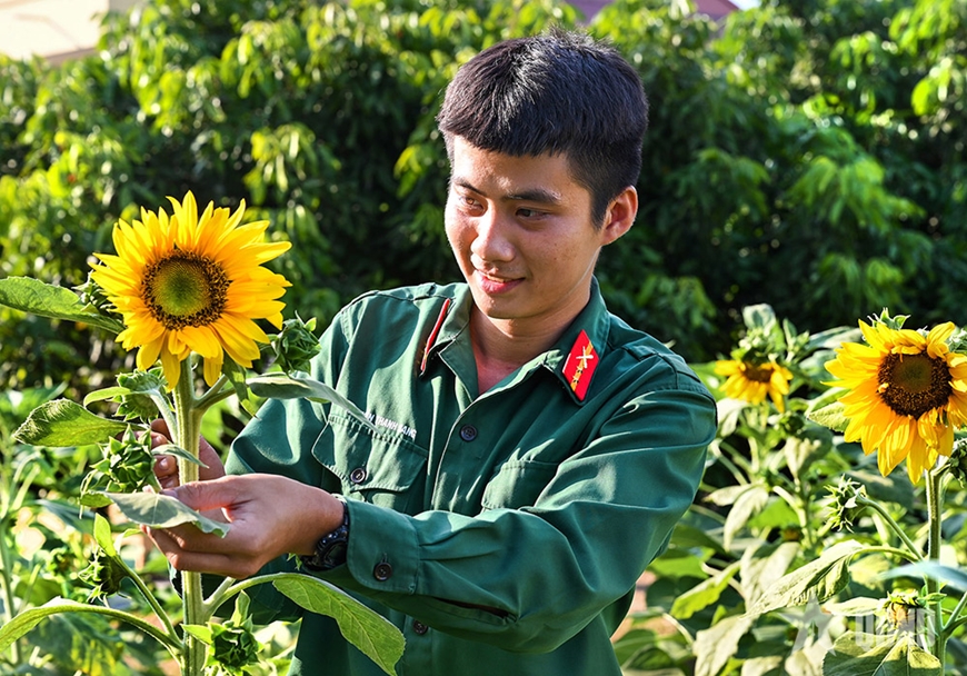 Trung sĩ Lê Quốc Việt, khẩu đội trưởng thuộc Đại đội 1, Tiểu đoàn 1 (Lữ đoàn Pháo binh 434), được giao nhiệm vụ phụ trách nhóm chiến sĩ chăm sóc hoa xuân. Với kinh nghiệm và kỹ thuật chăm hoa học được từ nhà vườn miền Tây Nam Bộ, Việt tỉ mỉ hướng dẫn đồng đội tỉa lá, ngắt đọt, xếp đặt châu hoa đan xen để hài hòa màu sắc. Trung sĩ Lê Quốc Việt tâm sự: “Chúng tôi đang chăm sóc vườn hoa hướng dương, mào gà, cúc vạn thọ và tạo dáng cho cây cảnh để chuẩn bị đón mừng xuân mới. Dù một vài đồng chí có đôi chút nhớ nhà, nhưng chúng tôi đã xác định tư tưởng, an tâm hoàn thành tốt nhiệm vụ”.