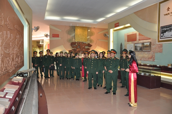 | Giáo dục truyền thống cho chiến sĩ mới tại Bảo tàng Hậu cần Quân đội. |