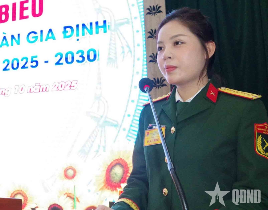 Đại úy QNCN Chu Phương Thảo phát biểu tại Trung đoàn Gia Định.