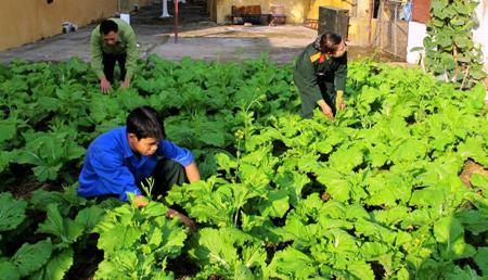 Vườn rau tăng gia quanh bếp, quanh nhà của Ban CHQS huyện Lương Tài.