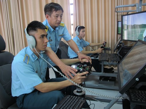 | Giờ học của giảng viên, học viên Học viện Phòng không-Không quân trên thiết bị mô phỏng khí tài trang bị hiện đại. |