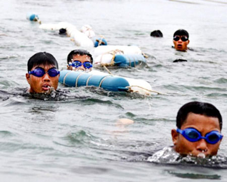 - Khi xuống biển, hầu như ai cũng thấy mình thật nhỏ bé. Nắm được tâm lý đó, trong quá trình huấn luyện, cán bộ đơn vị từ cấp mũi trở lên thường xuyên quán triệt phương châm “bơi cùng chiến sĩ, lặn cùng chiến đấu viên” để dìu dắt, hỗ trợ, giúp chúng tôi yên tâm, vững dạ. Quá trình cùng bơi, cùng lặn, cùng nghỉ, cùng ăn ngay trên mặt biển, cán bộ, chiến sĩ thêm hiểu và gắn bó với nhau hơn, giúp chúng tôi thêm tin tưởng, mạnh dạn bộc bạch, giãi bày tâm sự.