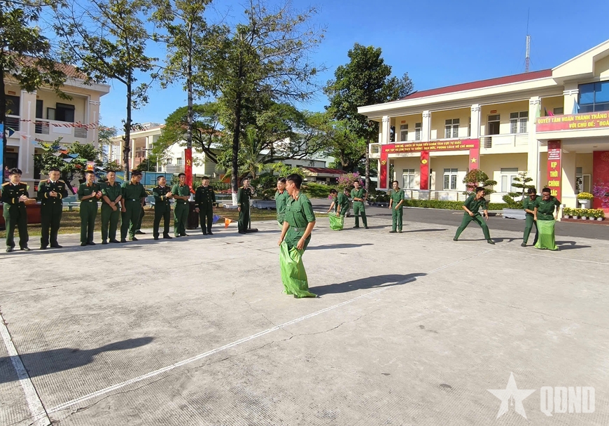 | Trò chơi nhảy bao bố được các đơn vị trong Lữ đoàn 596 tổ chức vui tươi, phấn khởi. |